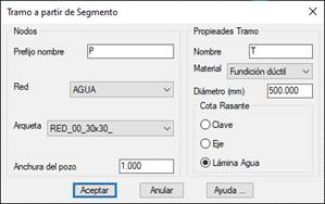 Adicionalmente se creará un tramo por cada uno de los nodos con las características especificadas en la siguiente ventana: