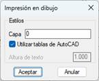 Utilizar tablas del CAD: Si activamos esta opción, al realizar la impresión sobre AutoCAD 2005 o superior, el programa lo realiza utilizando los objetos tabla del CAD.