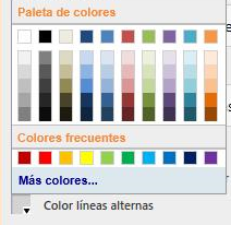 Tanto para los colores de las líneas alternas, como para los colores de las fuentes, se empleará el selector de color: