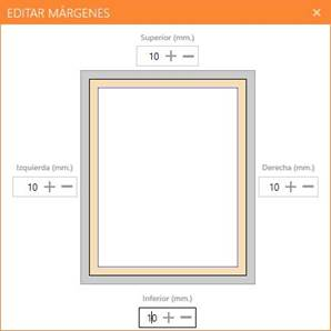 Permite establecer los márgenes del documento. Hay algunos márgenes predefinidos pero es posible definir una configuración personalizada. Para ello, al seleccionar Margen Personalizado se activará el botón EDITAR, que nos llevará al editor de márgenes y se podrán establecer individualmente (en milímetros):