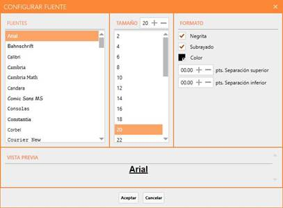 Es posible personalizar las fuentes de cada uno de los bloques, con el botón Fuente…
