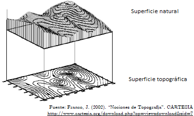 En Topografía se entiende por superficie natural aquella superficie cuya forma es coincidente con la de la realidad física que se pretende caracterizar. Sin embargo, la naturaleza propia de los sistemas de representación gráfica, así ocurre entre otros en el sistema de planos acotados, obliga a adoptar su proyección ortogonal sobre un plano de referencia horizontal como la superficie representada, asignándole la denominación de superficie topográfica, agraria o reducida (ver figura). La superficie topográfica es siempre menor o igual a la superficie natural ya que la primera de ellas es plana mientras ésta última es generalmente curva. Por otro lado hay que tener en cuenta que dos superficies reales distintas pueden corresponder a una misma superficie horizontal. Generalmente es la superficie topográfica la que tiene interés —es la que se representa en planos y mapas—, aunque pueden presentarse circunstancias en las que la superficie natural sea el mensurando objetivo, como por ejemplo, en casos en que se pretendan cuantificar tratamientos superficiales. Ambas superficies han de ser, por tanto, consideradas.