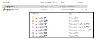 Cualquier herramienta de MDT, que trabaje con Segmentos, en el momento de la selección, en el caso de que los ficheros enlazados no existan, se creará una subcarpeta en la localización del segmento, la cual contendrá los ficheros enlazados al segmento. Tendría un aspecto similar a la siguiente captura.
