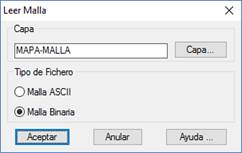 Tipo de Fichero: Indicamos el tipo de fichero de mallas a generar.