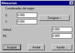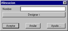 Una vez seleccionada una categoría de la lista, se le pueden incluir elementos pulsando el botón Nuevo. En el siguiente diálogo debe introducirse el nombre que va a recibir el elemento de la categoría y pulsando el botón Designar seleccionar los elementos de trazado a incluir en la librería, así como el extremo origen de la alineación.