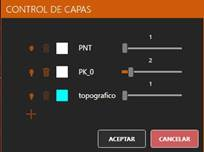 Control de capas: Nos permite gestionar las capas del visor CAD. Si hacemos clic en el icono se mostrará el siguiente diálogo:
