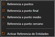 De la misma manera, en los submenús de Referencia de Entidades y Zoom encontramos los comandos de los menús de mismo nombre de la barra de herramientas: