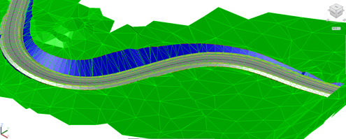 Recalcular Terreno Natural hace que el programa vuelva a calcular internamente el perfil transversal a partir de la superficie actual. Así, en caso de haber realizado varias modificaciones sobre una superficie, la extensión de los taludes de desmonte y terraplén se podrá ver afectada de acuerdo con el estado de la misma, sin tener que volver a generar e incluir en el segmento un perfil transversal que refleje esos cambios.