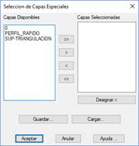 En esta última opción si no se conoce el nombre de capa de algún elemento a considerar en los cortes, y se sabe su posición en el área de dibujo, basta con presionar el botón Designar. En este momento vuelve al modo de dibujo, solicitando el programa la selección de objetos, operación que se ejecuta sobre todos y cada uno de los elementos designados.