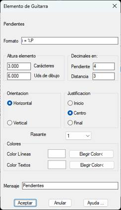 Existe la posibilidad de mostrar varios elementos de guitarra del tipo Pendiente, haciendo referencia cada uno a cada una de las rasantes del proyecto.