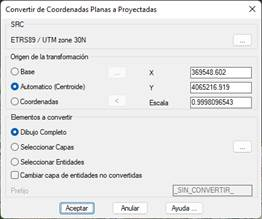 Podemos usar este comando para convertir un levantamiento de coordenadas planas a proyectadas, aplicando el factor de escala de la proyección elegida desde un origen seleccionado.
