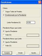 Peraltar: Indicamos si el vector es peraltable, además si presionamos el botón “Condición” podremos personalizar el tipo de peralte a aplicar.
