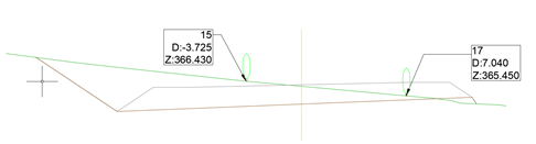 Planta: Se representa sobre los perfiles una marca con las características del punto designado.