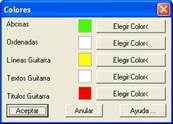 Al presionar en este botón nos aparece un diálogo donde se configuran los colores de las diferentes entidades que se dibujan en la guitarra. A continuación se muestra la ventana y se describe sus características.