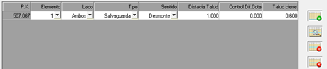 Control Dif. Cota: Este es un parámetro con el que se controla la aplicación de la cuneta. En este caso si la diferencia de cota entre los extremos del talud es mayor a este parámetro, se aplicará la cuneta correspondiente, en caso contrario no se aplicará. Por ello, un valor “cero” indicará que siempre se aplicará la cuneta de salvaguarda.