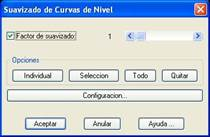 · Individual: permite suavizar una por una las curvas de nivel, mostrando el resultado en el momento de seleccionarlas gráficamente. Mediante esta opción se observa el resultado de los diferentes factores.