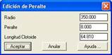 Insertar y Editar: Introduciremos o modificaremos uno de los registros de la tabla de peraltes, al activar cualquiera de estos botones aparecerá el siguiente diálogo donde se realizarán las modificaciones-