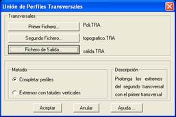 La utilidad de este tipo de comando es la unión de dos transversales por distintos métodos, el programa nos mostrará la siguiente ventana donde especificaremos los ficheros que deseamos unir y el fichero de salida donde se almacenará el resultado.