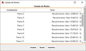 Con esta herramienta podremos comprobar si el tramo seleccionado cumple con las condiciones de configuración.