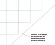 Usar celdas parciales en contorno (1): Con esta opción activada, el comando de “Volumen por Superficies” y “Volumen por Mallas” procesara sólo parcialmente aquellas celdas que se encuentran dentro del perímetro de la zona de cálculo.