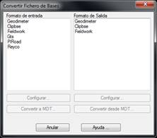 Similarly, if any format from the Output Format list is selected, the lower button Convert from MDT will be activated. If this button is clicked, the source file containing the MDT stations will be requested and then the output file will be requested, where the information about the stations will be sent in the selected format. Optionally, the Configure button can be enabled to specify some special characteristics of the format to which one wishes to export.