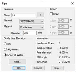 Trench: the option of drawing the trench of the corresponding pipe with polylines. The characteristics of the same are provided below: