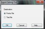 Points file: All the coordinates of all the points on the list are exported to a points file. When the dialog box is validated, the Export Points command is automatically executed. For further details, see the Surveying Points section in this manual.