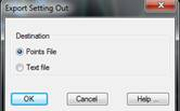 Points file: All the coordinates of all the points on the list are exported to a points file. When the dialog box is validated, the Export Points command is automatically executed. For further details, see the Surveying Points section.