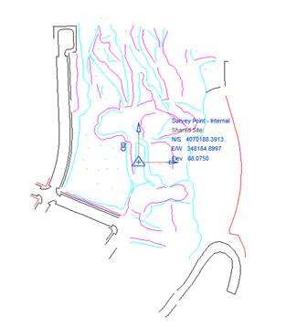 We can now see how the drawing and the recognition point are still central relative to each other, but that the recognition point coordinates have changed to the UTM coordinates in the drawing: