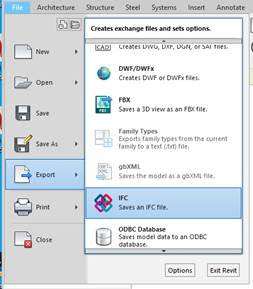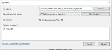 Select the “IFC2X3 Coordination View 2.0” format in the IFC export dialogue box to generate the corresponding IFC file: