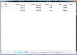 Once on screen, an element on the list can be selected and the Locate button clicked. The program will then enlarge the area surrounding that station in order to perform subsequent operations (edit, delete, etc.) easier. Additionally, if one clicks on Print, a printed list of the information shown on screen will be obtained.