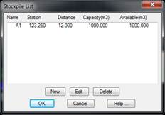 When inserting a new one it will request the station location for the stockpile with regard to the project horizontal alignment, the alignment displacement and the availability in cubic meters.