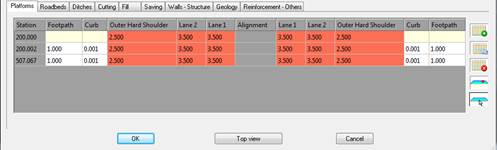 A platform is defined as the set of vectors formed on both sides of the horizontal alignment, or from the median if there is one.
