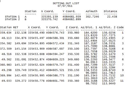 When this option is selected, the data on the list are sent to the printer selected. Information about the stations used is also shown. An example of a printed list can be seen below: