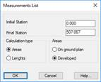 Areas: Selecting this option enables us to see if the list to be generated features ground plan or raised surfaces, in other words, a developed surface or a ground plan surface.