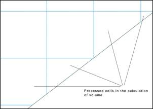 If the partial cells on the boundary option is activated in Settings > Volumes, in the event the cells on the calculation perimeter are only partially affected by the calculation of volume, only the affected region of the cell in question will be processed.