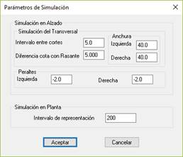 Peraltes: En el caso de que se desee simular los peraltes, establecemos los valores correspondiente tanto a la izquierda como a la derecha.