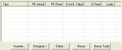 Longitud Talud: Este muro se define igualmente por unos pks de inicio y fin y se aplica si la distancia horizontal del talud excede del parámetro Longitud Talud.