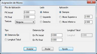Aplicación: Podemos especificar que los muros los aplique siempre o que sólo los aplique cuando la altura del mismo sea superior o inferior a un valor especificado por el usuario.