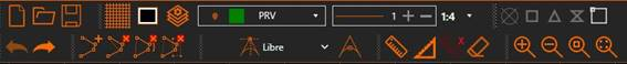 En la barra de herramientas encontramos los controles que nos permitirán gestionar el visor CAD así como la edición de la rasante: