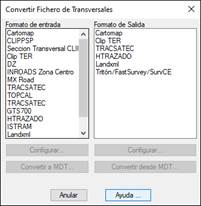 Este comando nos va a permitir importar y exportar ficheros de transversales de otros programas. Al ejecutar el comando nos aparecerá un diálogo con todos los formatos disponibles.