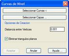 El botón Seleccionar Curvas permite seleccionar gráficamente las curvas que se desean emplear para realizar la triangulación. También cabe la opción con el botón Seleccionar Capas de especificar las curvas de nivel a triangular seleccionando las capas en las que se encuentran.