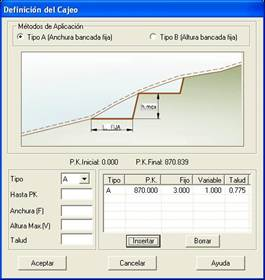 Con este comando definimos el cajeo existente por debajo de l terreno natural en los caso de terraplén, también llamado cajeo en ladera.