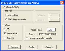 La aplicación de este comando nos permite dibujar en planta los transversales obtenidos. A continuación se muestra el diálogo que aparece al ejecutar el comando:
