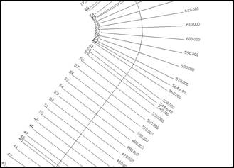 • Automático: En este caso el ancho de dibujo de los cortes en planta será el correspondiente que aparece en el fichero de transversales seleccionado. Por lo que, dependiendo de la anchura de cada corte, pueden existir cortes con distinta longitud a izquierda y derecha.