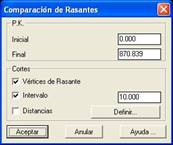 Distancias: Adicionalmente, si deseamos comparar unos pks determinadas de la rasante, en esta opción mediante el botón “Definir...” podremos insertar los pks deseado.