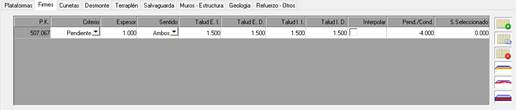 Talud I.D.: Valor del talud de firme interior derecho, igualmente sólo aplicable en secciones con mediana.