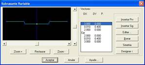 En la izquierda disponemos de una representación gráfica de la misma y en la derecha la definición vectorial con los correspondientes botones para la edición. Entre estos botones además de los habituales de inserción, edición y eliminación, disponemos de los siguientes botones: