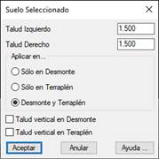 · Talud vertical en Desmonte: Si esta casilla se encuentra activada el talud del suelo seleccionado en situación de desmonte se construirá vertical hasta el contacto con el talud de firme.