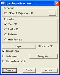 Con vistas a la utilización por otros programas, el presente comando permite representar la superficie con diferentes entidades de AutoCAD:
